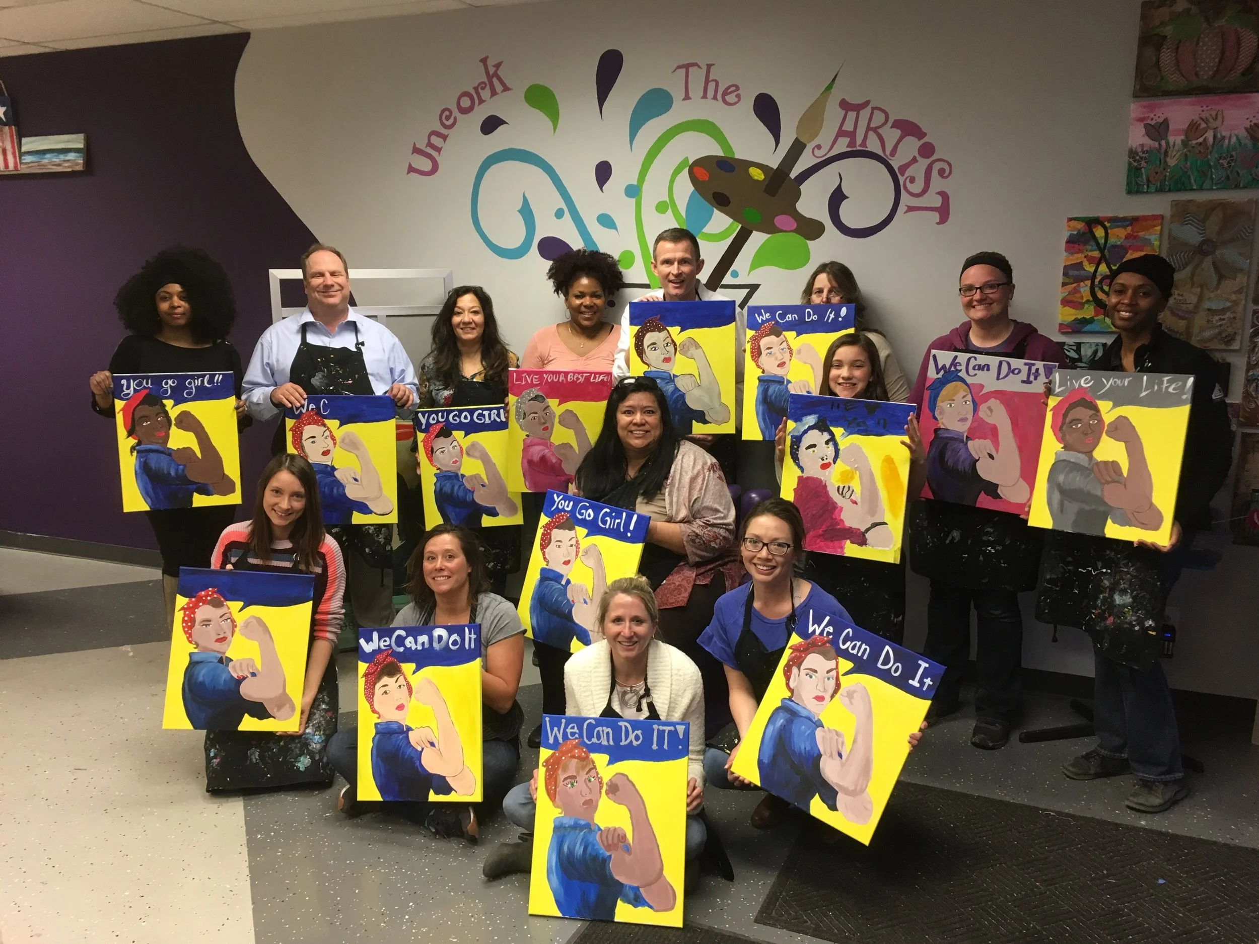 Feel free to browse through the different categories on our art menu and let your imagination run wild. You can request any of these options to be on our open calendar, schedule a private party at our studio, fundraising or even enjoy a convenient take-home kit!